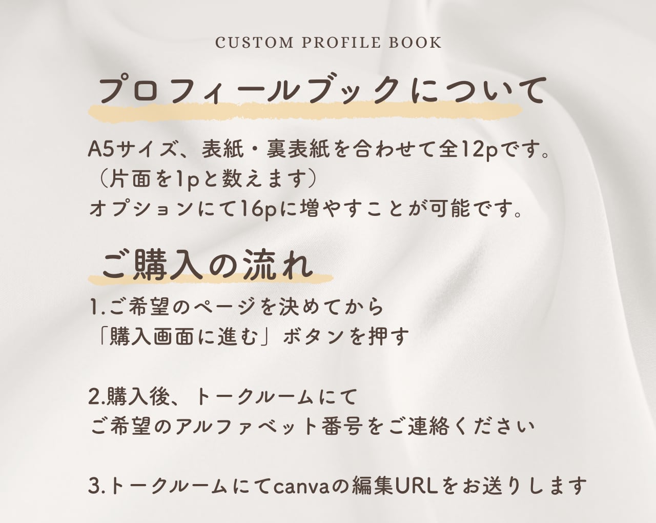 ページを選んで自由にカスタムできる、プロフィールブックテンプレートです。